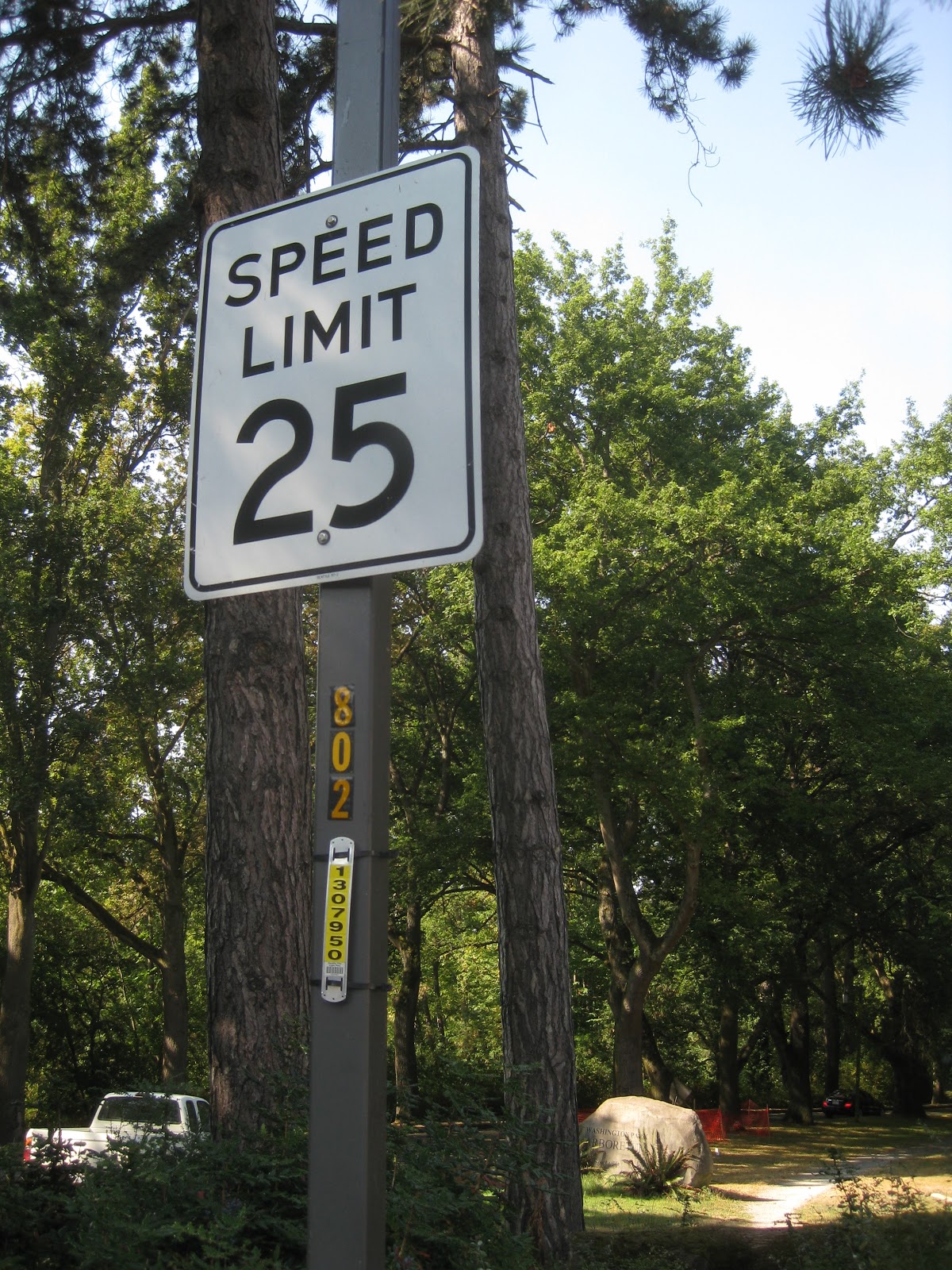 Then I swung my bike onto the road and pedaled through the park. Nobody whizzed by. Sure there were cars on the road, but they no longer felt threatening. I passed another traffic-calming feature: a speed bump near the park entrance (but I was so happy to be riding, I didn't stop to take a picture!).